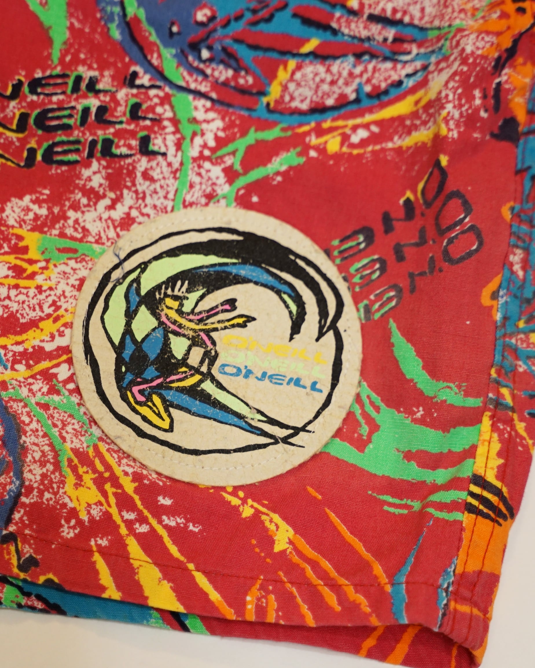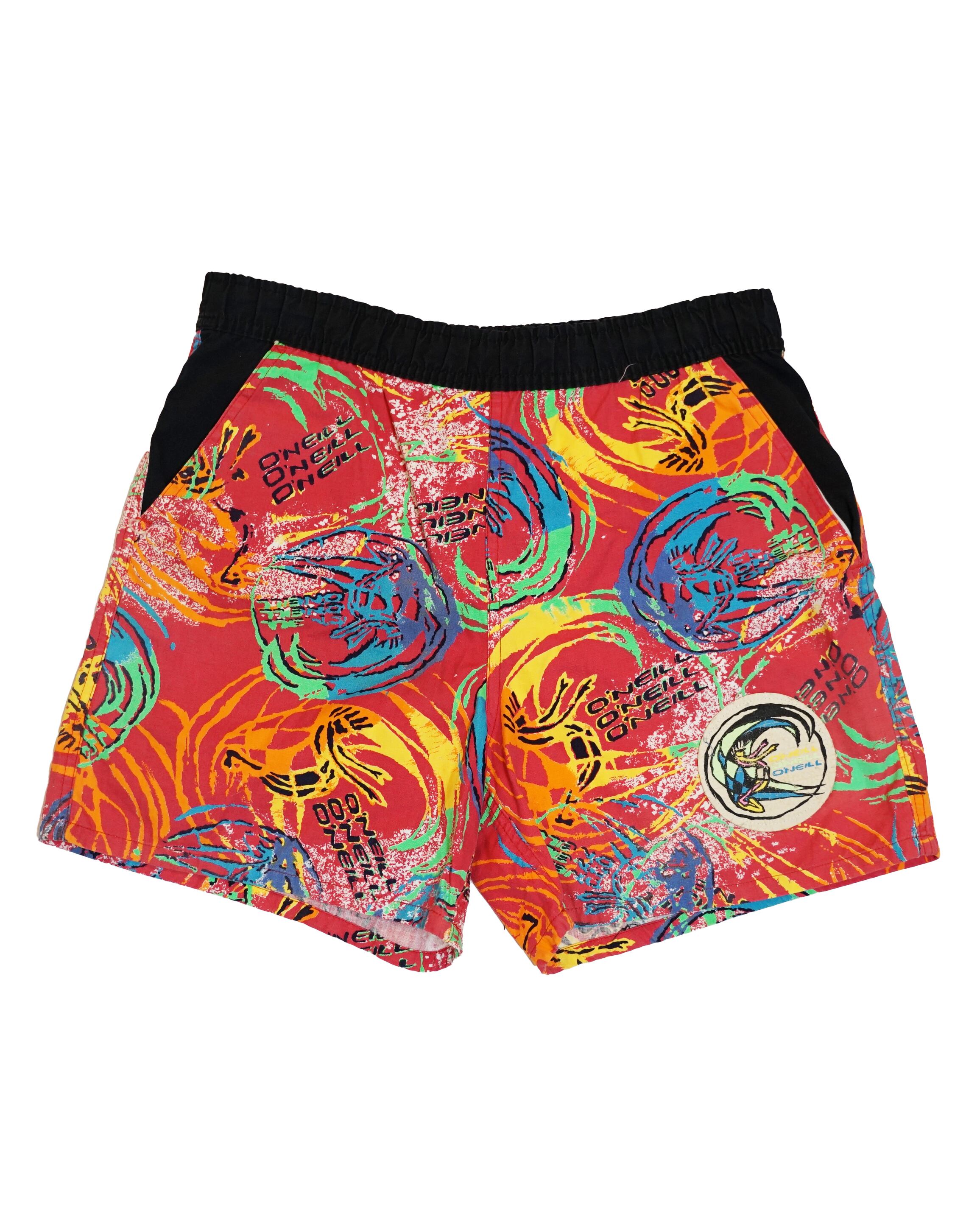 80年代 オニール サーフショーツ ☆オールドグラフィック ☆オールドロゴ ☆80s ☆丈短め 表記サイズ M ウェスト 38㎝ 総丈39㎝ 股下 11㎝