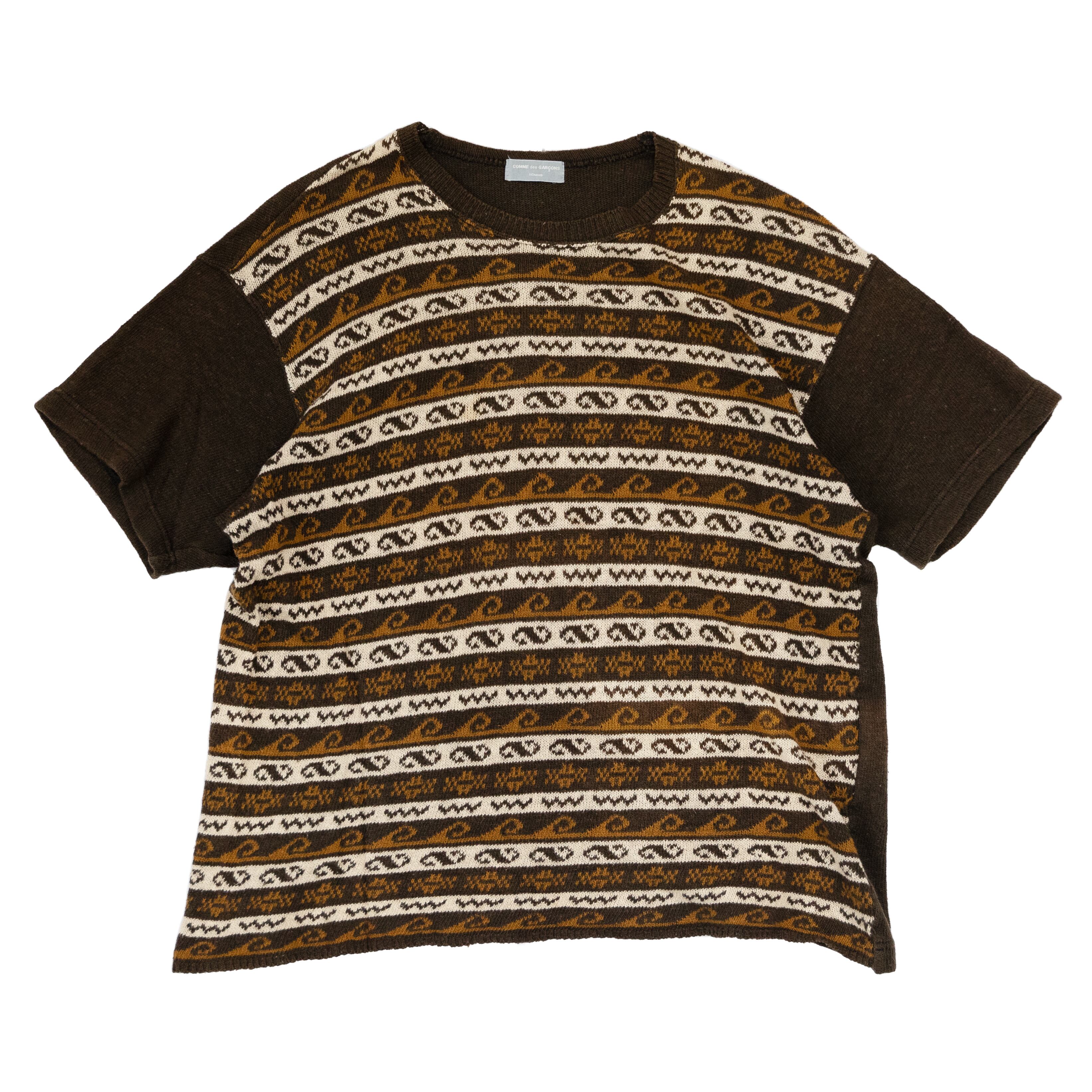 90年代 コムデギャルソン オム S/Sニット ☆激レア ☆波柄 ☆生地の特性でねじれあり ☆グッドデザイン 表記サイズ なし 着丈 61cm 肩幅 53cm 身幅 54cm